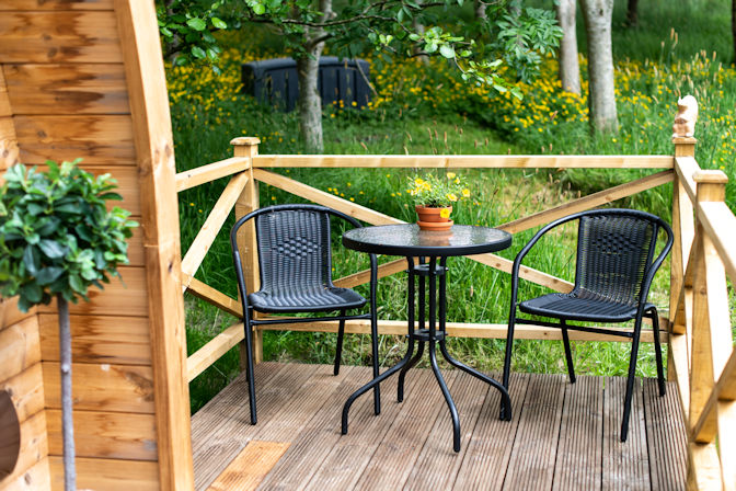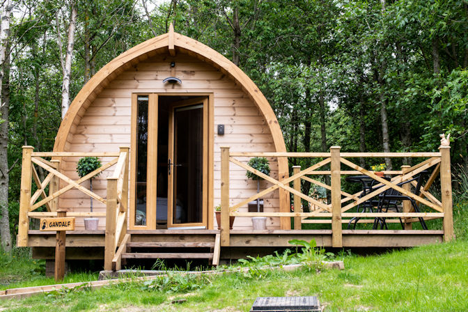 Gandalf is the final pod 12 m away with private veranda to admire the view up Boulsworth Hill which changes with the time of day and can resemble Ayers Rock glowing red as the sun sets. On a quiet evening, the town hall clock three miles away can be heard chiming the hour, truly magical.